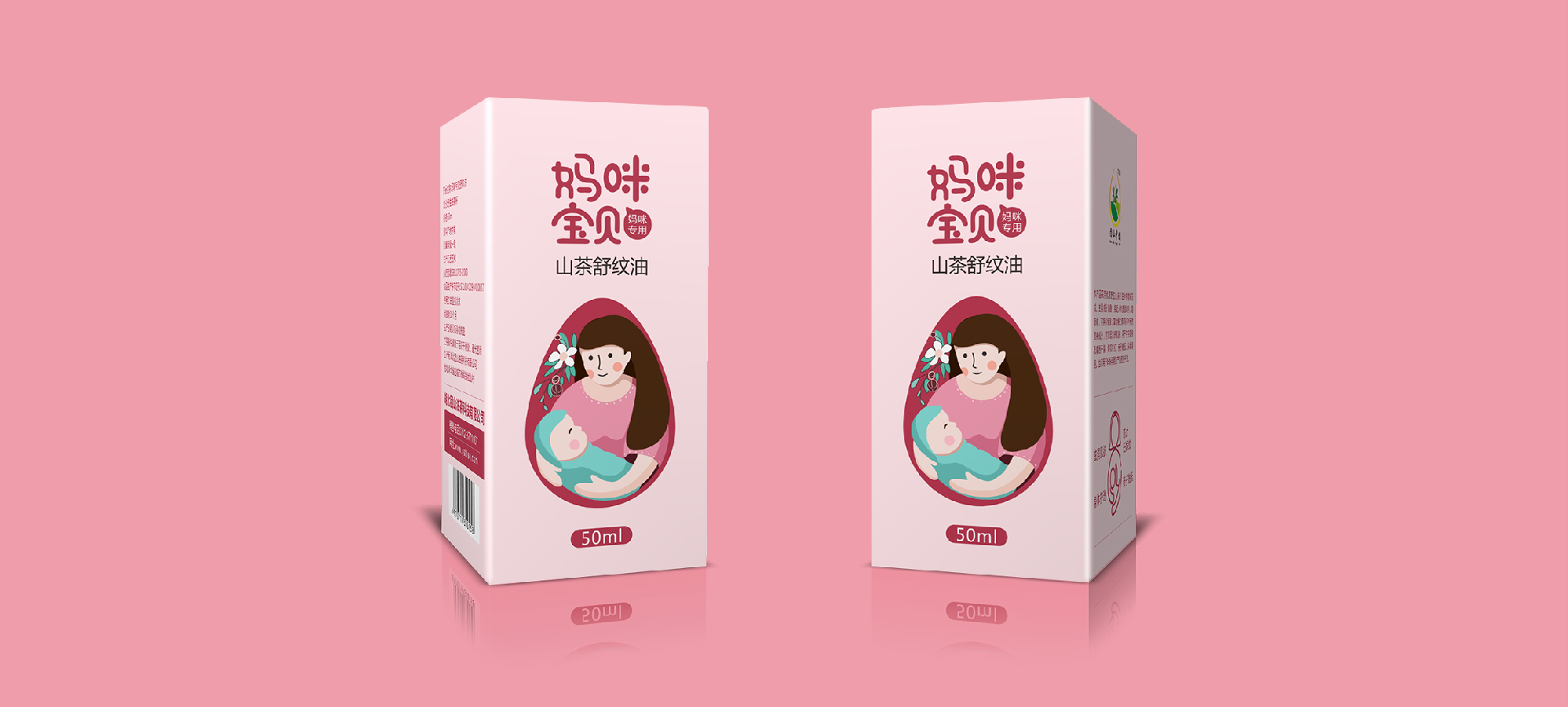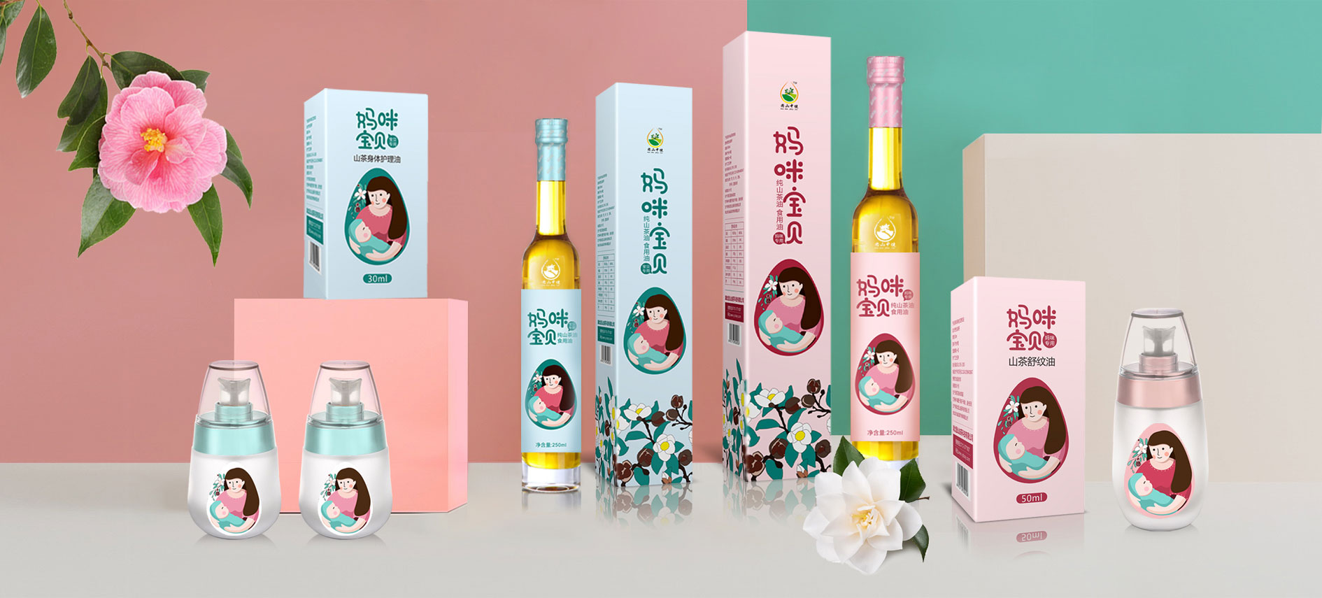 在針對于山茶油市場進行調研后,將目標消費人群聚焦在孕媽和準孕媽中,通過分析消費者痛點和感情消費點,對產品包裝進行升級,媽咪寶貝是一個健康安全山茶油的品牌,經(jīng)過產品整合,將系列產品包裝設計規(guī)劃統(tǒng)一,加深消費者對媽咪寶貝的品牌認知度,使得品牌本身定位更加精準。